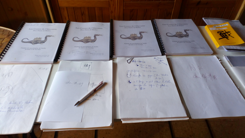 Les notes de bas de page de la version de Samana (version 9.8) sont toutes intégrées. Reste encore à produire la chronologie. La version 10 ne sera plus très longue à être expédiée aux éditeurs. Aujourd’hui, le dernier membre du comité éditorial des Contes de l’Alycastre m’a rendu sa copie, ses annotations et ses commentaires : conseiller littéraire, scriptdoctor, conseillers historiques, linguiste, correcteurs, en sus de Don Datto di Melito bien entendu qui m’a téléphoné hier pour me dire qu’il en avait assez de toutes ces relectures, qu’il nous fait une entière confiance, et attend désormais le lancement du chantier du Tome III avant de nous livrer de nouveaux documents anciens à synthétiser.