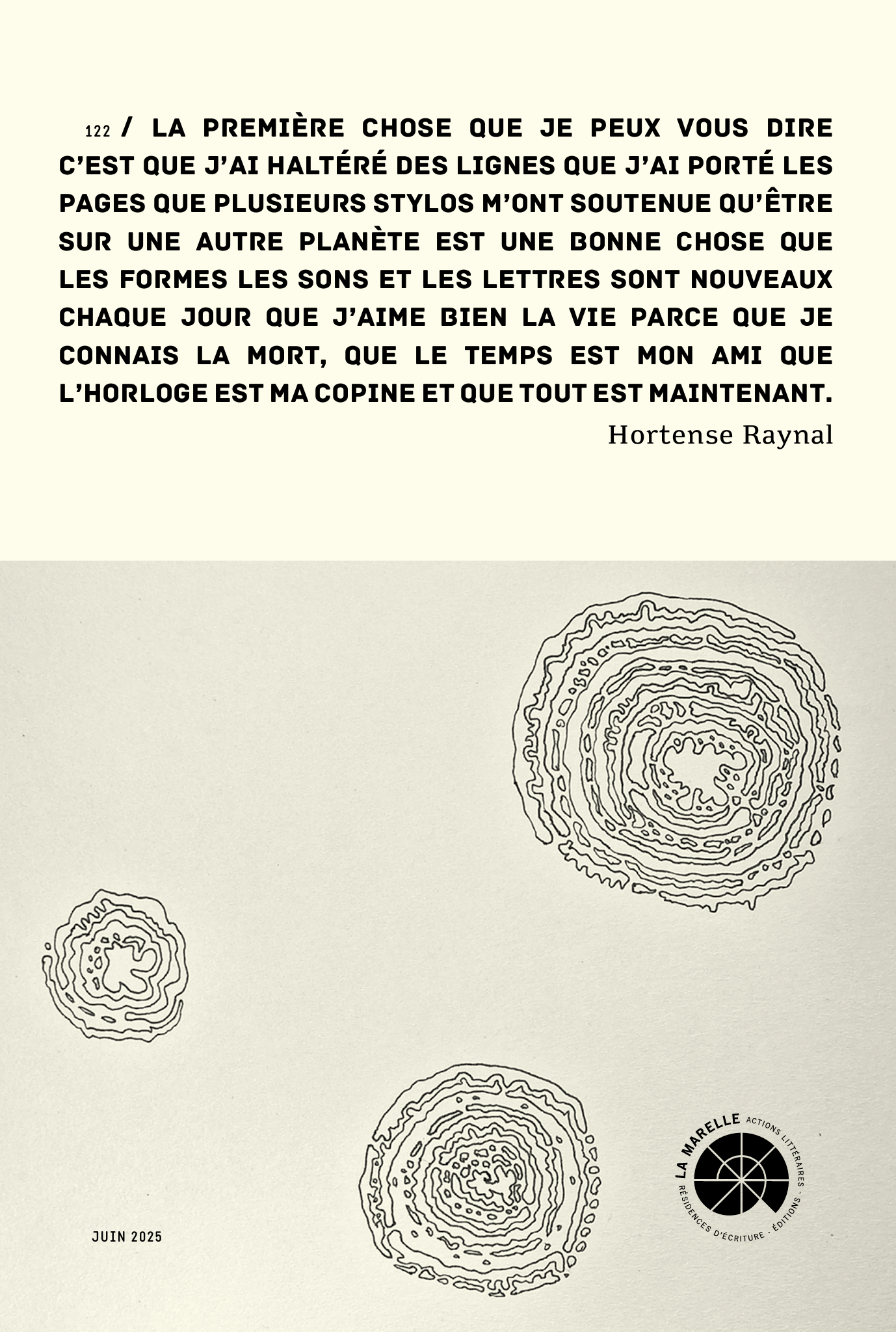 La Marelle édite des ouvrages au format numérique, parfois “homothétiques” (équivalents aux livres imprimés), mais le plus souvent “innovants”, c’est-à-dire conçus comme des œuvres dynamiques, modifiant le rapport habituel à la lecture ou à l’écriture. Elle édite également, pour chaque résident·e, une revue disponible aussi bien dans sa version imprimée qu’en pdf téléchargeable.