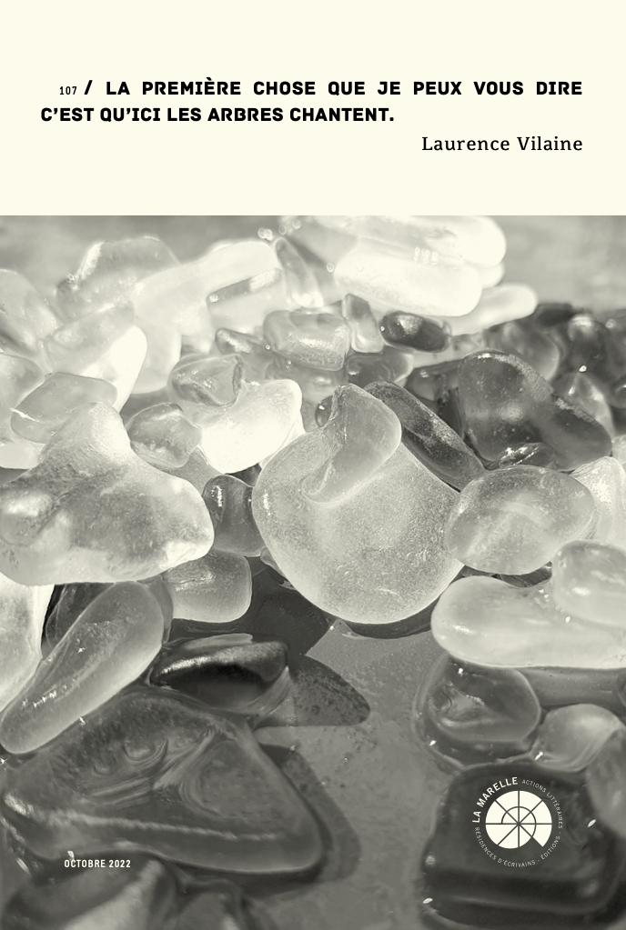 Laurence Vilaine et La Marelle, c’est une vieille histoire. Ça commence par une première rencontre en 2012, avec Delphine Bretesché comme bonne fée. Puis nous accueillons Laurence Vilaine pour une première résidence de création en 2014, avec un projet entre Marseille et Alger : "J’entends des chants de femmes". Cette première résidence est percutée par un deuil mais donnera naissance au livre La Grande Villa (Gaïa, 2016), entièrement écrit à La Marelle : "c’est le lieu qui a fait l’histoire". Ce texte sera mis en musique par Bijan Chemirani et porté sur scène à plusieurs reprises.