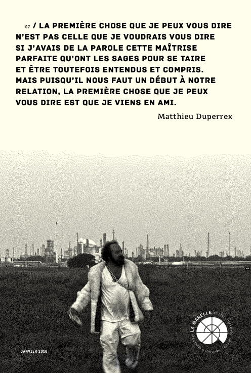 - à l’occasion de sa sortie de résidence d’écriture numérique à La Marelle, dans le cadre des Mercredis de Montévidéo (Marseille), le 24 février 2016