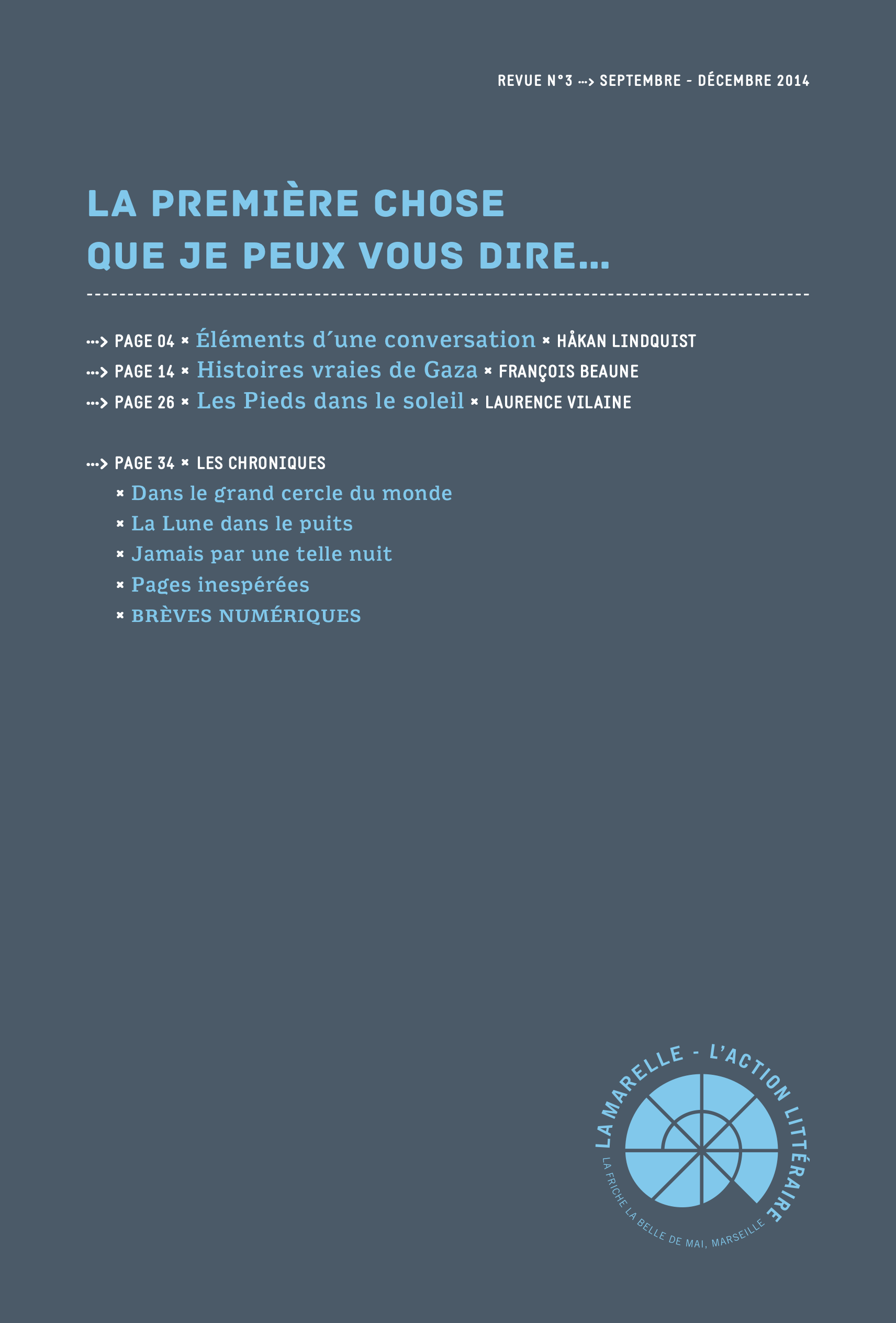 - participation à un festival littéraire autour des écriture du réel avec une série de lectures et de rencontres d’écrivains méditerranéens