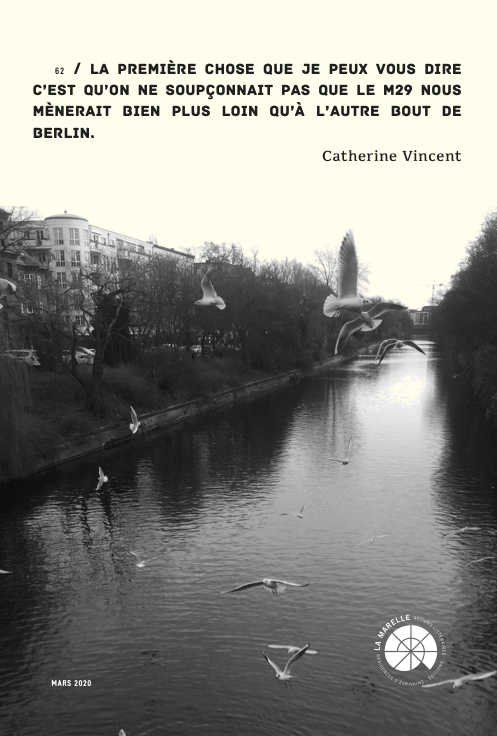 Pour ce projet, Catherine Vincent comptent plonger dans la lecture de Walter Benjamin, mais aussi partir vivre les villes dans lesquelles il a vécu et arpenter les lieux de l’exil de Jamel Ibntrewan. À Berlin, devenue aujourd’hui la capitale européenne des réfugiés syriens en Europe, ils veulent, comme leur héros, étudier l’allemand et se retrouver dans le rôle d’apprenants.