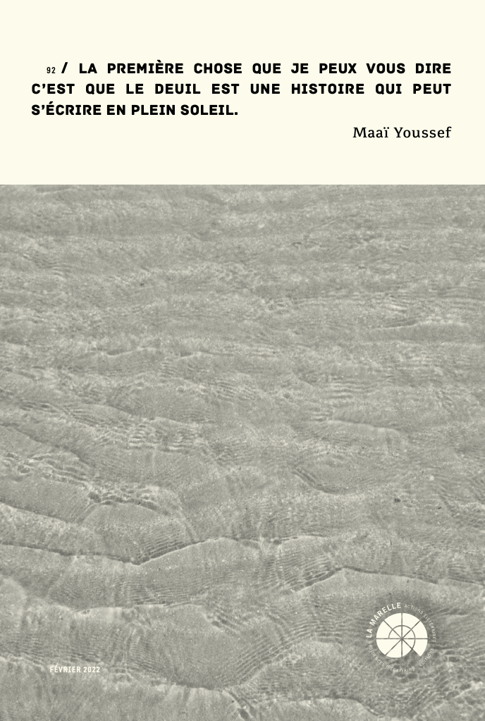 Un entretien avec Maaï Youssef autour de la revue de La Marelle. Une rencontre animée par Roxana Hashemi, enregistrée en studio à la Friche la Belle de Mai, diffusée sur les ondes de Radio Grenouille et en podcast sur la plateforme Transistor.